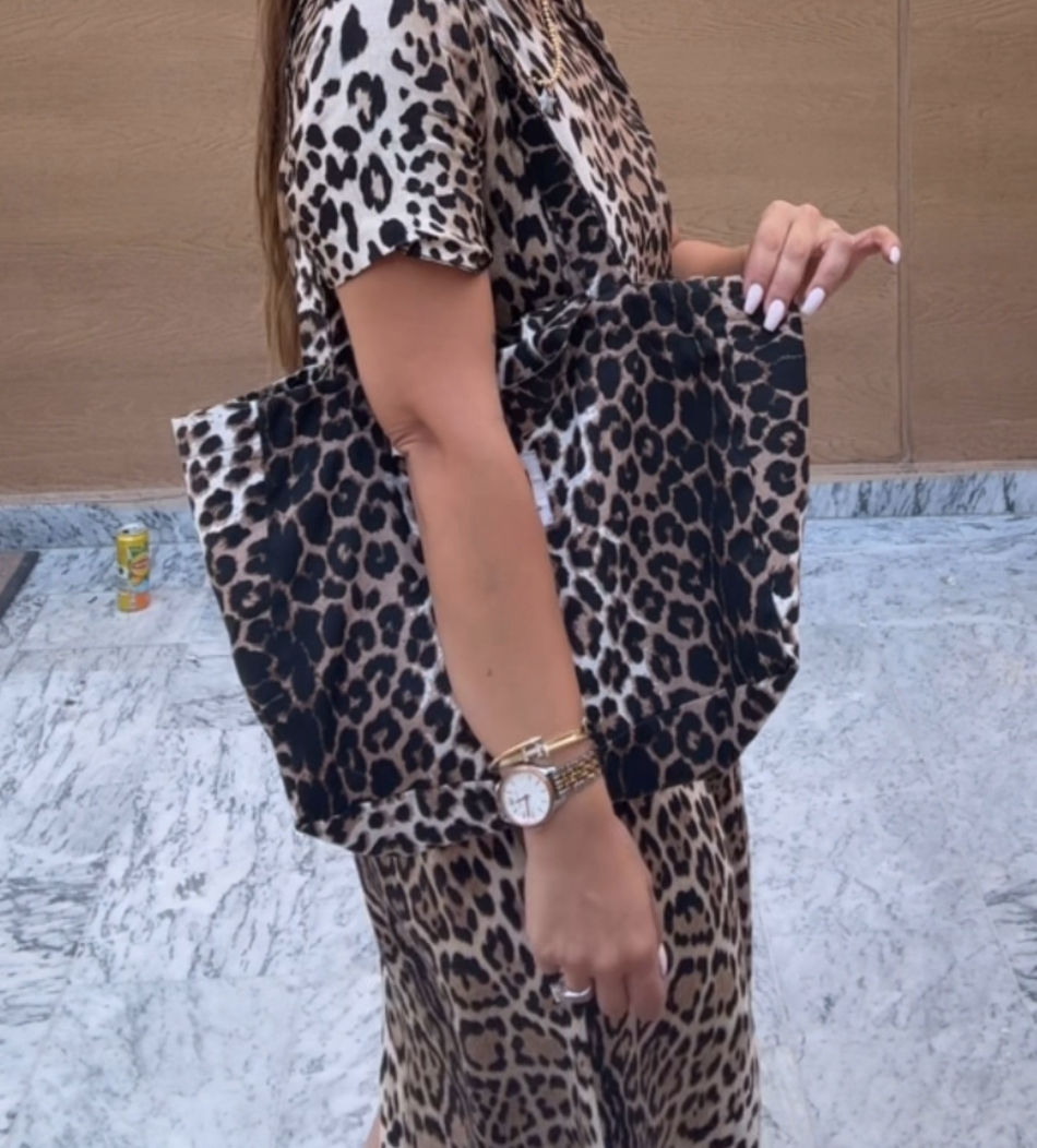 Leopard Büyük Boy Shopper Çanta Telalı Model