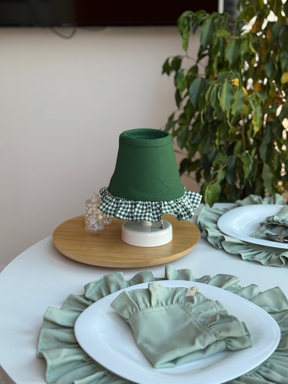 Mossy Keten Kareli Fırfırlı Bardak Altlığı Yeşil