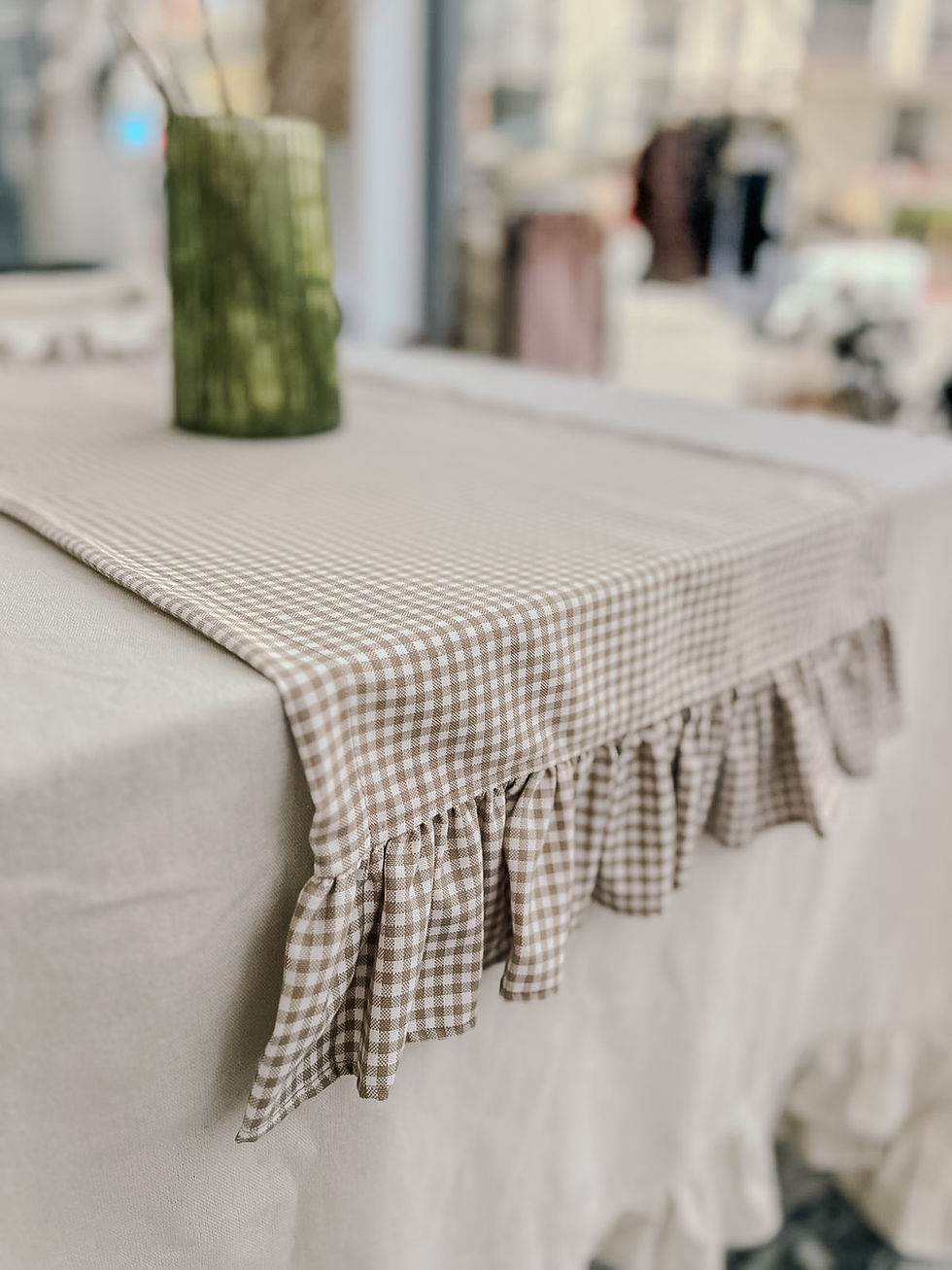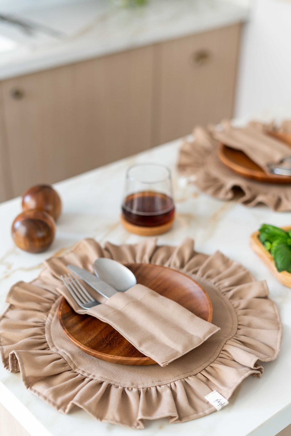 Sienna %100 Dak Keten Fırfır Detaylı Amerikan Servis/ Supla KAHVE DİKDÖRTGEN