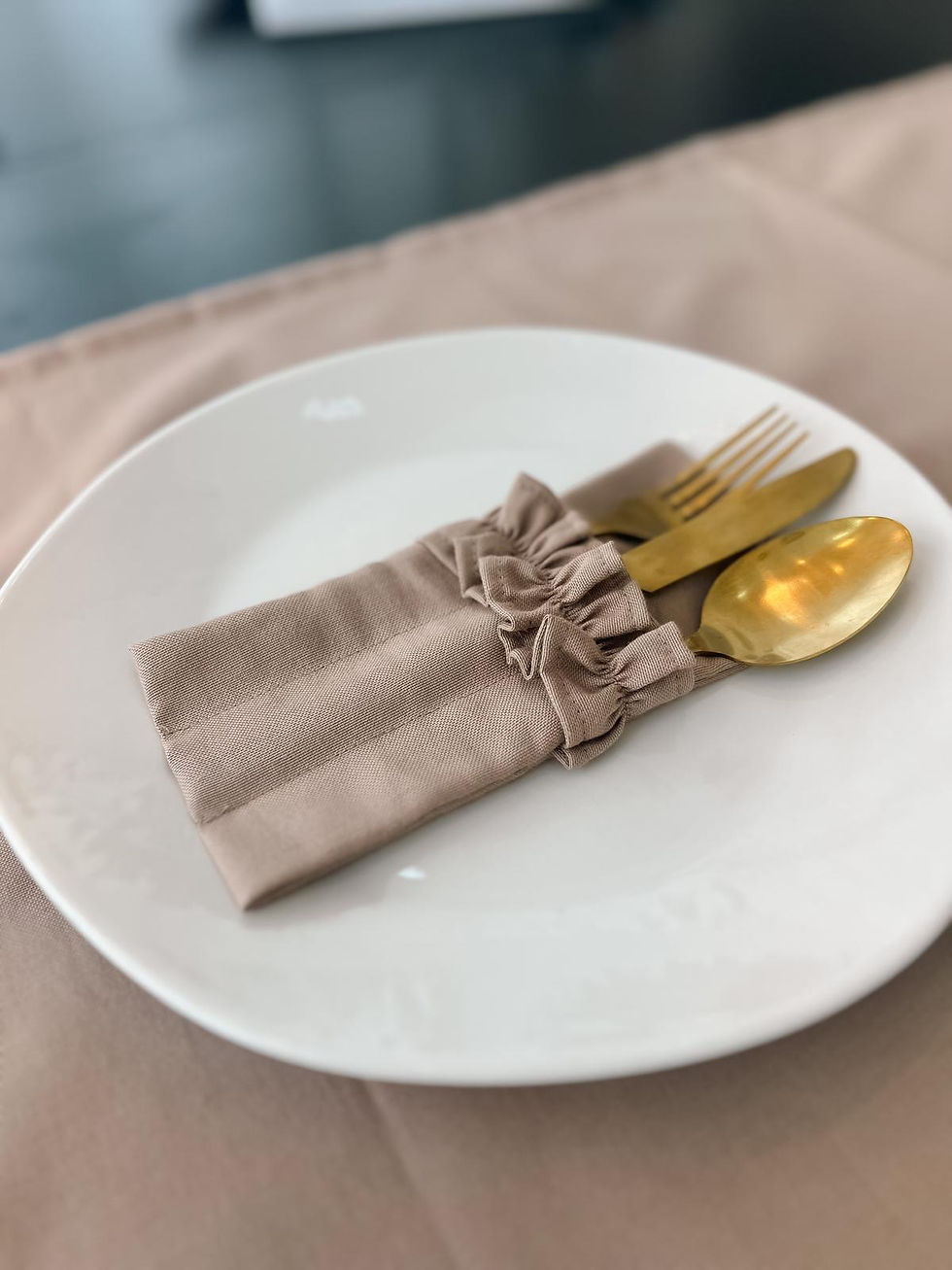 Sienna Fırfırlı Keten 3 Bölmeli Çatal-Kaşık-Bıçak Kılıfı